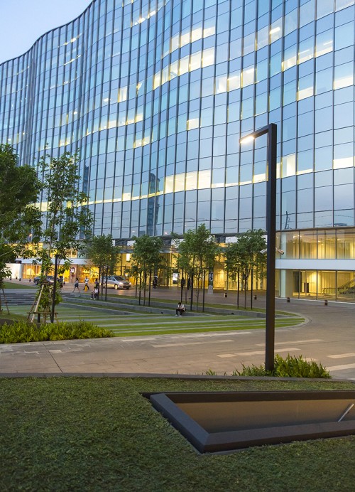 FYI Center is a new generation office building located in Bangkok. The Light Linear PT ULI-21172-W30 Area Luminaire was used to subtly illuminate the main entrance landscape, parking area, and pedestrian areas, while adding aesthetic value to the overall landscape design and architecture.