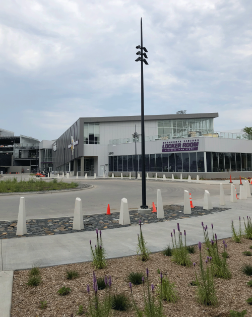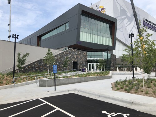 Located on the former Northwest Airlines Headquarters site, the Vikings’ new headquarters includes 277,000 gross square feet of office and training facilities, four outdoor practice fields and an indoor practice facility, featuring an 100-yard indoor field and 95-foot clear height on the interior. Other player and staff amenities include 6.500-square-foot locker room that is complete with fire places and big screen TV, 6,145-square-foot weight room, cryotherapy and hydrotherapy center, a one-of-a-kind draft room, nutrition bar and Vikings Entertainment Network studio. A 6,000-seat stadium can accommodate a variety of community events, including Vikings’ scrimmages, local high school game and entertainment such as concerts.